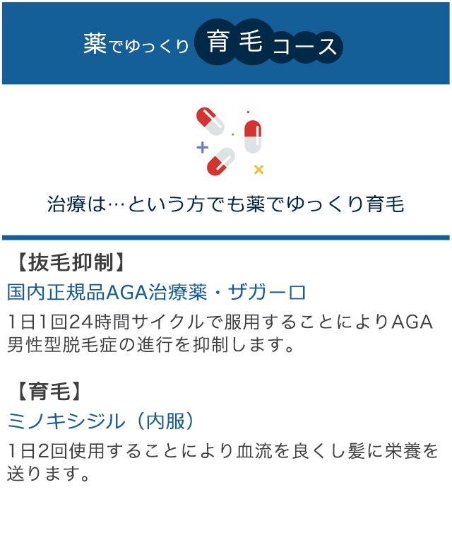 患者様の状態やご要望により、国内正規品の薬品をご用意しております。医療機関でのみ処方・販売可能な薄毛治療用の医薬品を取り扱っています。