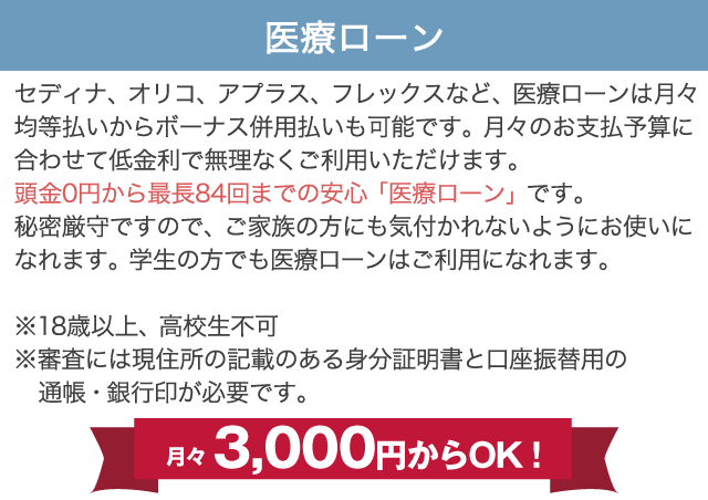 A.もちろん、ご相談だけでも結構です。ドクター診察、治療内容のご説明、お見積りまでは一切料金はかかりません。無料メール相談フォームにて遠慮なくご相談ください。